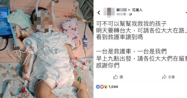預計14日上午要從花蓮搭救護車轉往台大醫院