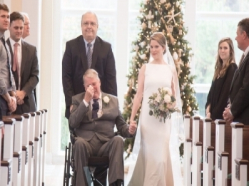 最後一次的牽手!癌末男子坐輪椅「牽著女兒走紅毯」一句「我很愛妳!」全場淚流!
