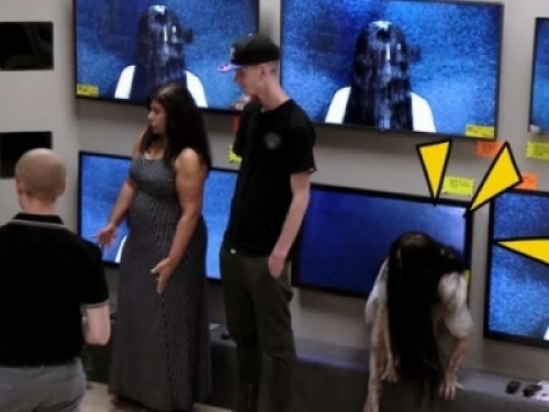 甚至有人當場直接罵了髒話!要是你有天逛家電行突然看到有貞子從螢幕裡跑出來,你會有甚麼反應呢?