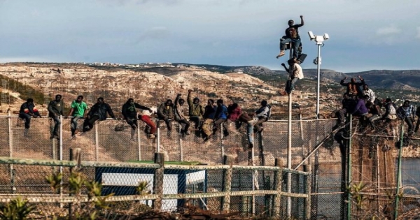 美國和墨西哥的人正比排球賽,邊境線就是他們的排球網哦!