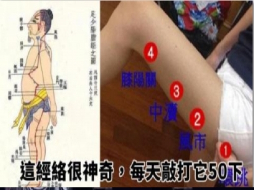 每敲打四下算一次,每天敲左右大腿各五十次,