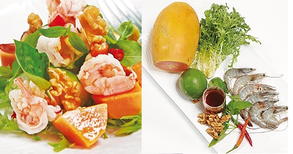 青木瓜和大蝦均洗淨備用。其他調料備好。