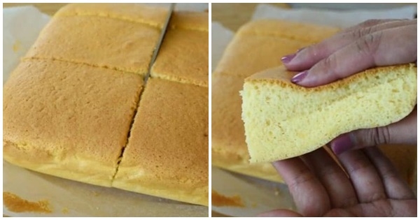 5. 蛋糕出爐後,在桌上重摔幾次,待涼後切件享用(*不用倒扣的)