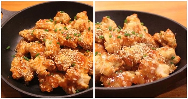 Step12.雞塊外皮香酥,很像是炸過的,沾上微辣有蜂蜜和大蒜香味的醬汁,味道迷人,芝麻和青蔥讓風味更提升到一個層次。