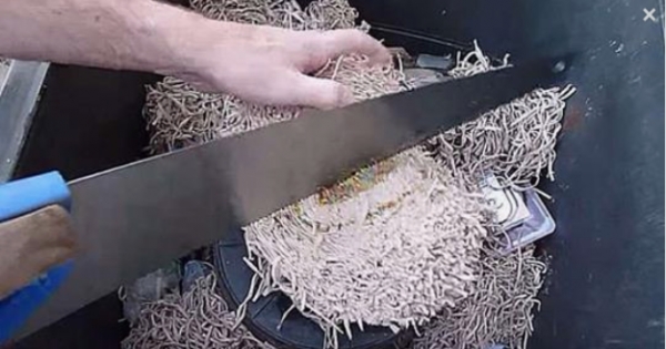有一名網友用了一年多的時間自製了一個橡皮筋球,隨著球形變得越來越大,外層開始爆裂後,感覺橡皮筋球好像變得有生命一樣?於是,他決定在丟棄橡皮筋球之前先把球鋸開來,看看現在裡面到底變成甚麼模樣了…