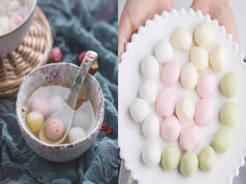 碗底放入糖桂花、枸杞用熱水沖開攪拌均勻,放入丸子即可享用。