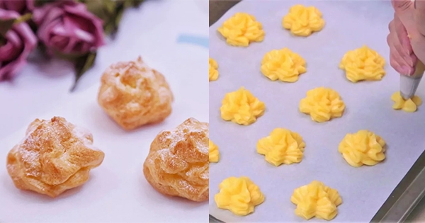 【7】在墊了油紙的烤盤上,垂直擠出泡芙麵糊。
