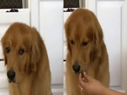 狗狗的嗅覺真的超厲害,不知道為什麼就是可以聞出藥的味道,把飼料吃完就只剩那一顆藥不吃!最後主人只好出奇招讓狗狗乖乖吃下,不過那表情真的好絕望XDD