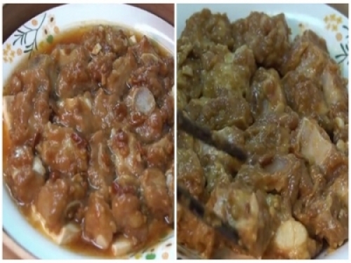 撈出來控幹水,一定要控幹,不然蒸出來的排骨會因為水分多不好吃。