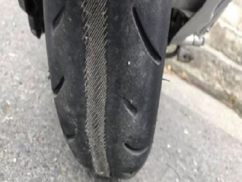 有網友解釋,是因為輪胎磨平到裡頭編織層鋼絲都跑出來,可能隨時都有爆胎危險好危險!