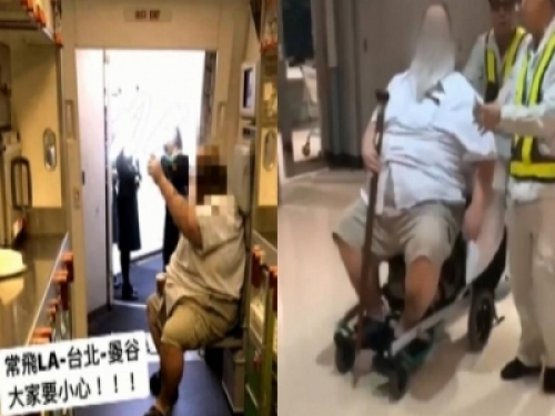 但因為剛開完刀,沒辦法出力,等他上完廁所需要空服員幫他拉起來