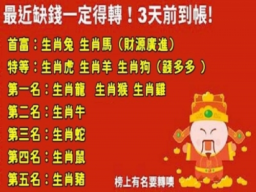 特等:生肖虎 生肖羊 生肖狗(錢多多 )