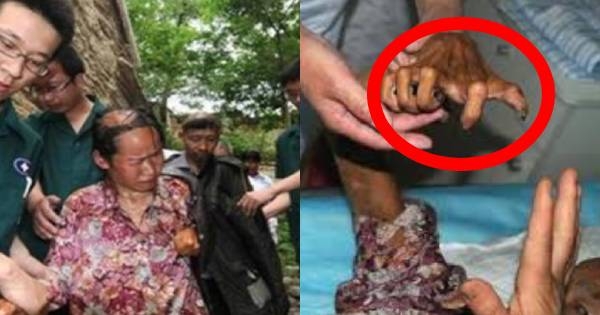 指甲彎曲變形獸化嚴重,見人就咬就像野獸一般眾人不敢靠近