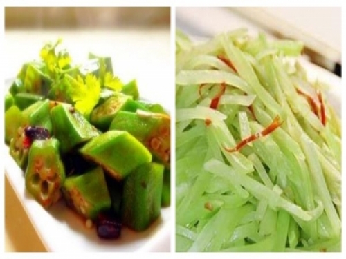 2、將其去蒂,順長切條,鍋燒開水,放入秋葵加適量鹽,少許油焯製2分鐘。
