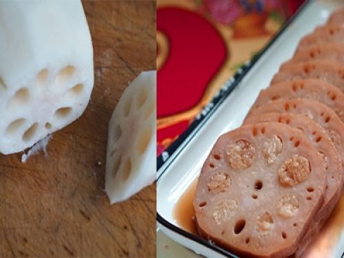 【食材】糯米300克,藕兩個,紅糖4塊,黃冰糖一塊,水適量,牙籤適量。