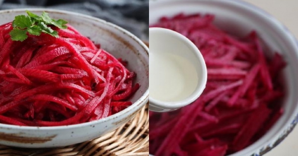 紫美人蘿蔔中含有非常豐富的營養物質,每百克紫美人中就含有537克黃酮、472克花青素、133克可溶性蛋白,以及78克葉綠素。紫美人的甜度可以達到6.9度以上。吃一個紫美人比10個蘋果、10斤白菜還要好呢!用紫美人來做一道涼拌菜好看又好吃哦!年夜飯,我家必不可少的素菜,2分鐘上桌,顏值高,解油膩助消化!下面我們就來一起做這道美食吧!