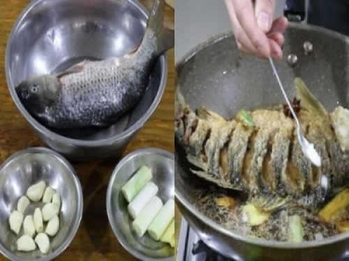 蔥段、薑片、大蒜子、鯉魚(鯉魚是提前宰殺好的)