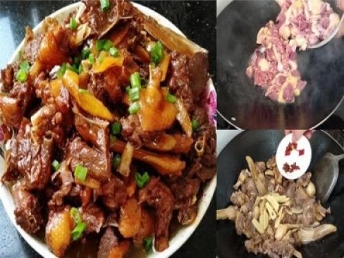第六步:炒香後,加入生抽,老抽少許調色,翻炒均勻,再加上適量的啤酒,沒過鴨肉就行了