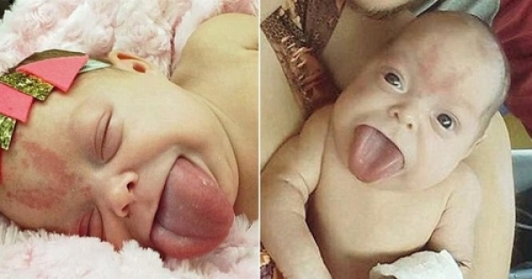 她一出生「舌頭就比嘴巴大兩倍」差點被舌頭噎死「醫生把舌頭割開」露出笑容萌到你會跟著笑!