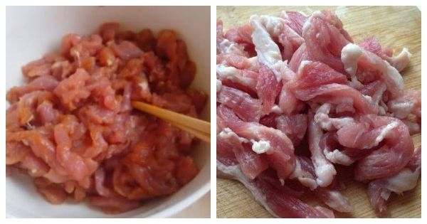 瘦肉洗淨切絲加料酒,澱粉,雞蛋打好留蛋清抓勻醃製10分鐘。
