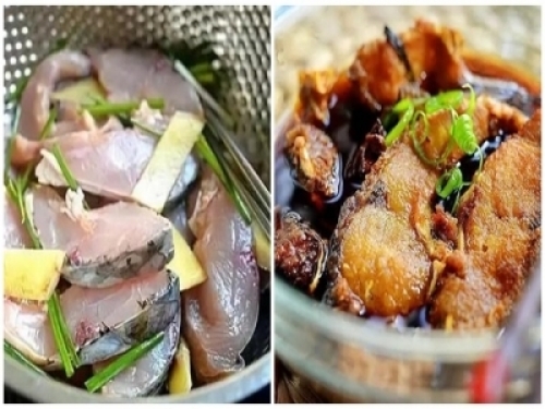 食材準備:草魚、蔥、鹽、料酒、生抽、八角、桂皮、食用油。