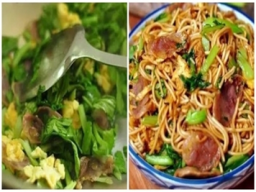 6、加入洗乾淨瀝乾水的青菜秧翻炒