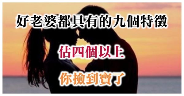 女人能集上面九種於一身,九九歸一那就是完美老婆。沒有也不要奢求,能佔據四條都是撿到寶了。如果你覺得說的有理,歡迎點讃評論說出你的故事!
