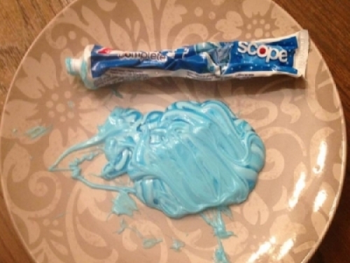 艾咪給女兒一隻牙膏,只是她將牙膏擠出、擠在碟子上,