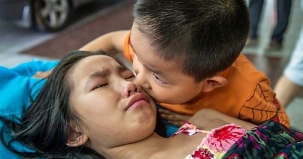 弟弟就守在姐姐地床邊
