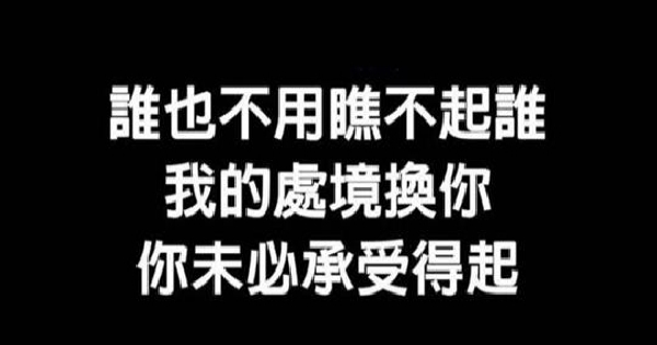 誰也不用瞧不起誰!我的處境換你,你未必承受得起!