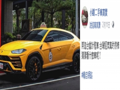 有民眾在臉書PO出一張「超跑級計程車」照片,引發網友熱議!由此照片可見,該超跑小黃停靠在信義區,眼尖的網友發現這款超跑是藍寶堅尼「Urus」,預售價高達999.89萬元,最大馬力650匹。
