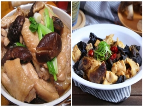 香菇蒸雞!蒸出來的雞肉都很嫩,而且充滿香菇味,雞湯也很下飯喔!
