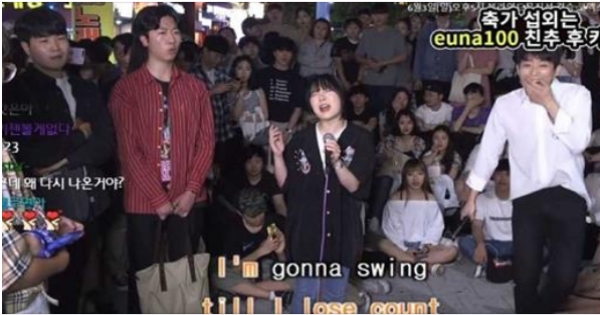 這是韓國的一檔節目,街頭KTV,在街上讓路人來挑戰唱歌,一位馬尾正妹前來挑戰,並選唱澳洲創作天后希雅(Sia)的高難度歌曲《Chandelier》!