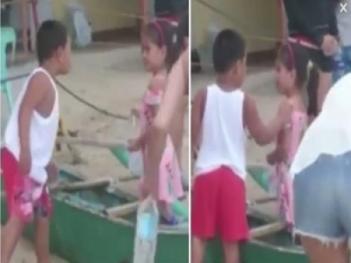 影片中有一個小男孩,走向小女孩後便開始揮手,看起來就是一副要欺負人的樣子。這時有創意的網友就開始將這畫面配音,變成了完全搞笑的「把妹實錄」…