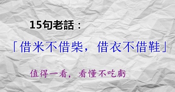 15句老話:借米不借柴,借衣不借鞋