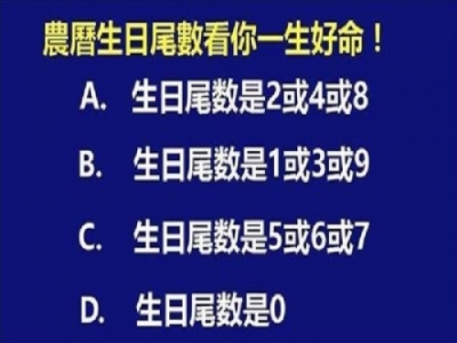你的農曆生日尾數是多少,