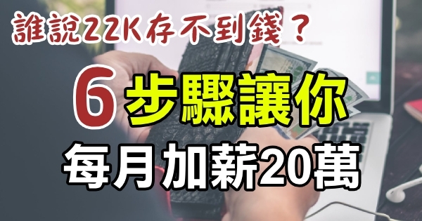 職場攻略:「誰說22K存不到錢?」「 6步驟」讓你每月「加薪20萬」(尤其是第6點)!
