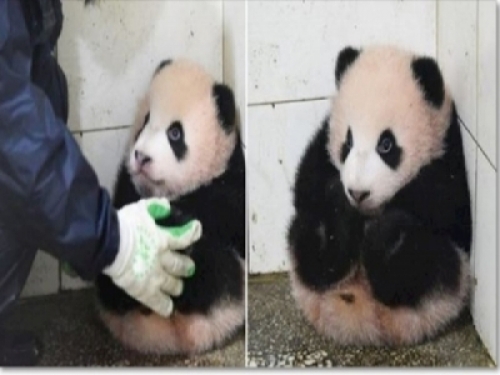 沒想到熊貓寶寶被抱起來放到角落,被阿姨放生還真的就什麼都不做,等別人把牠抱回去了~真的是太可愛了!也讓網友們都笑倒了!