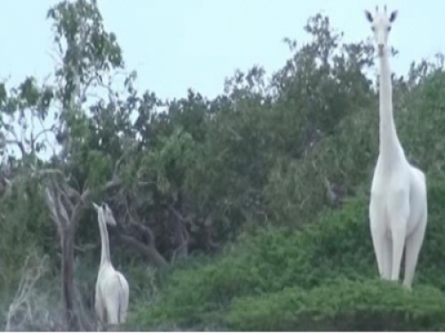 看見如此罕見的白色長頸鹿,保育人員立刻拍下影片,讓大家得以看見牠們美麗的身影,這也是人類史上首次拍到的白色長頸鹿影片。