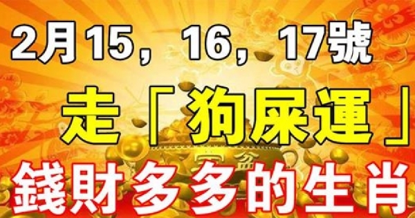 2月15,16,17號連續三天,走「狗屎運」錢財多多的生肖!