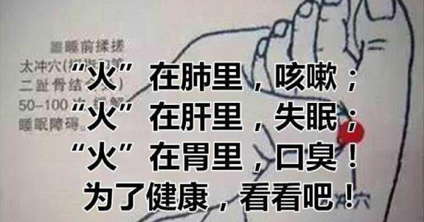 「火」在肺裏,咳嗽;「火」在肝裏,失眠;「火」在胃裡,口臭!