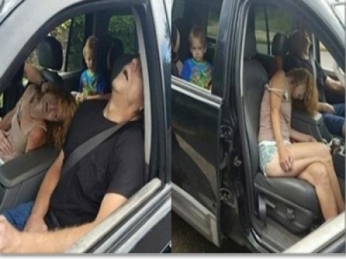 爸爸媽媽開車載四歲兒子,「開到一半爽暈了」!讓警察都忍不住把照片PO上來!
