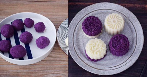 1、紫薯和山藥分別洗淨切成薄片上鍋蒸熟後各加入30克煉乳打成細膩的泥狀,食用油煮熟備用