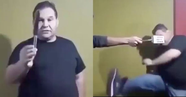 影片中大叔很認真的要教大家如果遇到持刀的歹徒該如何做,還把玩具小刀拿給一旁協助他的人,結果就在他要示範的時後,一旁這個假搶匪卻總是可以找到漏洞,讓大叔的防身術瞬間被破解!