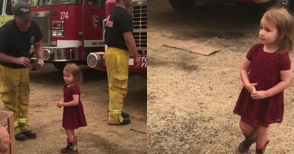 而這天為了幫這些辛苦的救火英雄們加油打氣,盧茲帶著自己兩歲的女兒格雷西,一早帶著滿滿的愛心早餐,前來送給這些辛苦的救火英雄!