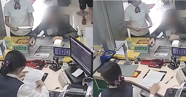 這位男子默默地走向櫃台填寫單子,當銀行人員要他本人簽名時,他卻在簽名欄寫下「救我,傳銷在後面。」,看到求救字條,銀行人員環顧四周,發現真的有人在監視著男子,還時不時探頭看他的狀況。