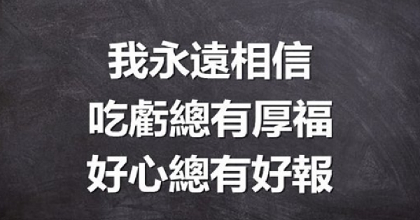 我永遠相信: 吃虧總有厚福,好心總有好報!