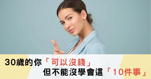30歲的你「可以沒錢」,但不能沒學會這「10件事」