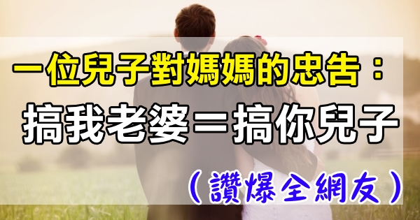 「搞我老婆就等於在搞妳兒子」難得有兒子出來打臉自己媽媽,網友:讚爆了!
