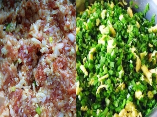 用料:凍薺菜球,韭菜,豬肉,雞蛋,植物油,味極鮮,鹽